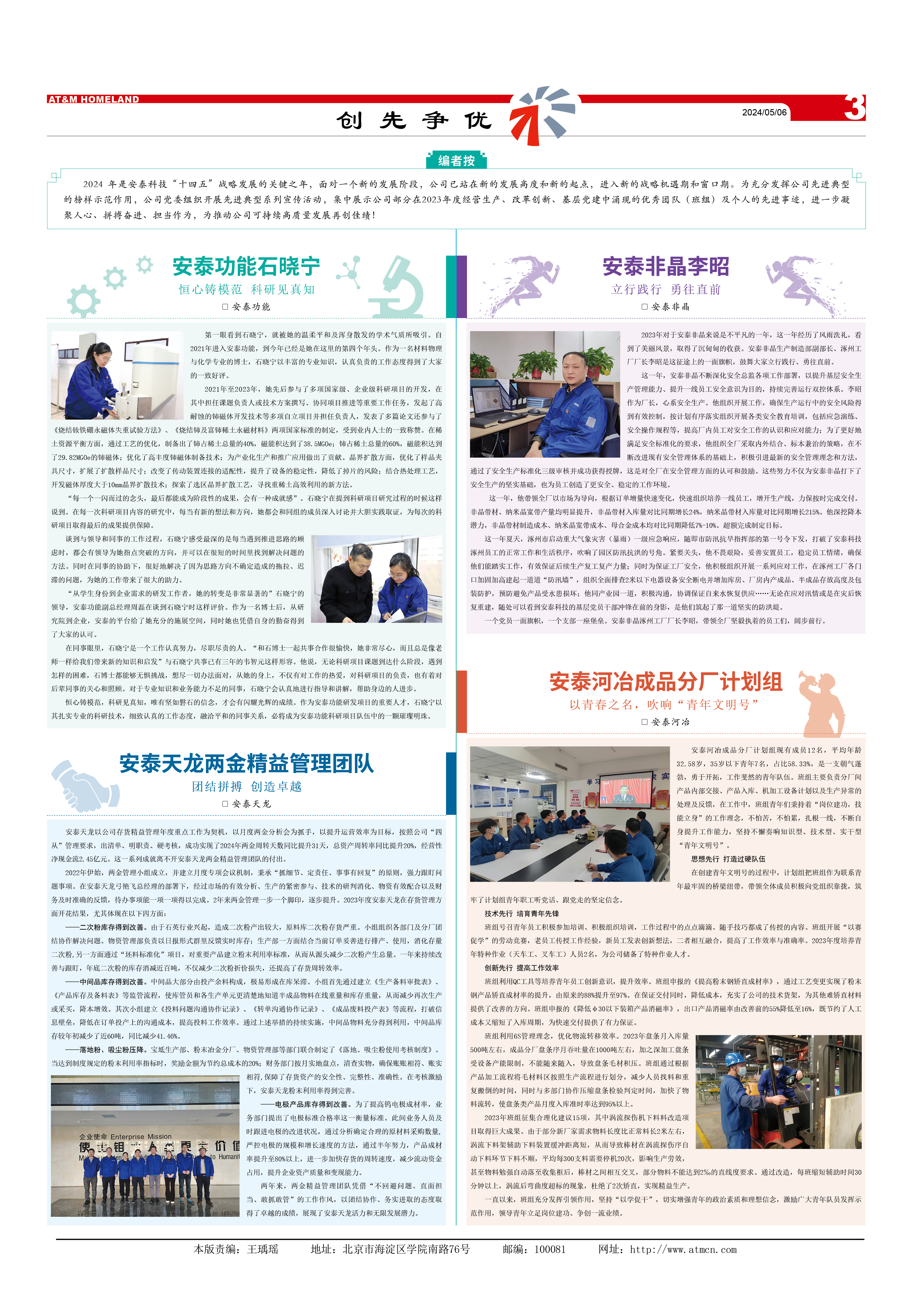 2024 年是安泰科技“十四五”戰(zhàn)略發(fā)展的關(guān)鍵之年,面對一個新的發(fā)展階段,公司已站在新的發(fā)展高度和新的起點,進(jìn)入新的戰(zhàn)略機(jī)遇期和窗口期。為充分發(fā)揮公司先進(jìn)典型的榜樣示范作用,公司黨委組織開展先進(jìn)典型系列宣傳活動,集中展示公司部分在2023年度經(jīng)營生產(chǎn)、改革創(chuàng)新、基層黨建中涌現(xiàn)的優(yōu)秀團(tuán)隊(班組)及個人的先進(jìn)事跡,進(jìn)一步凝聚人心、拼搏奮進(jìn)、擔(dān)當(dāng)作為,為推動公司可持續(xù)高質(zhì)量發(fā)展再創(chuàng)佳績!