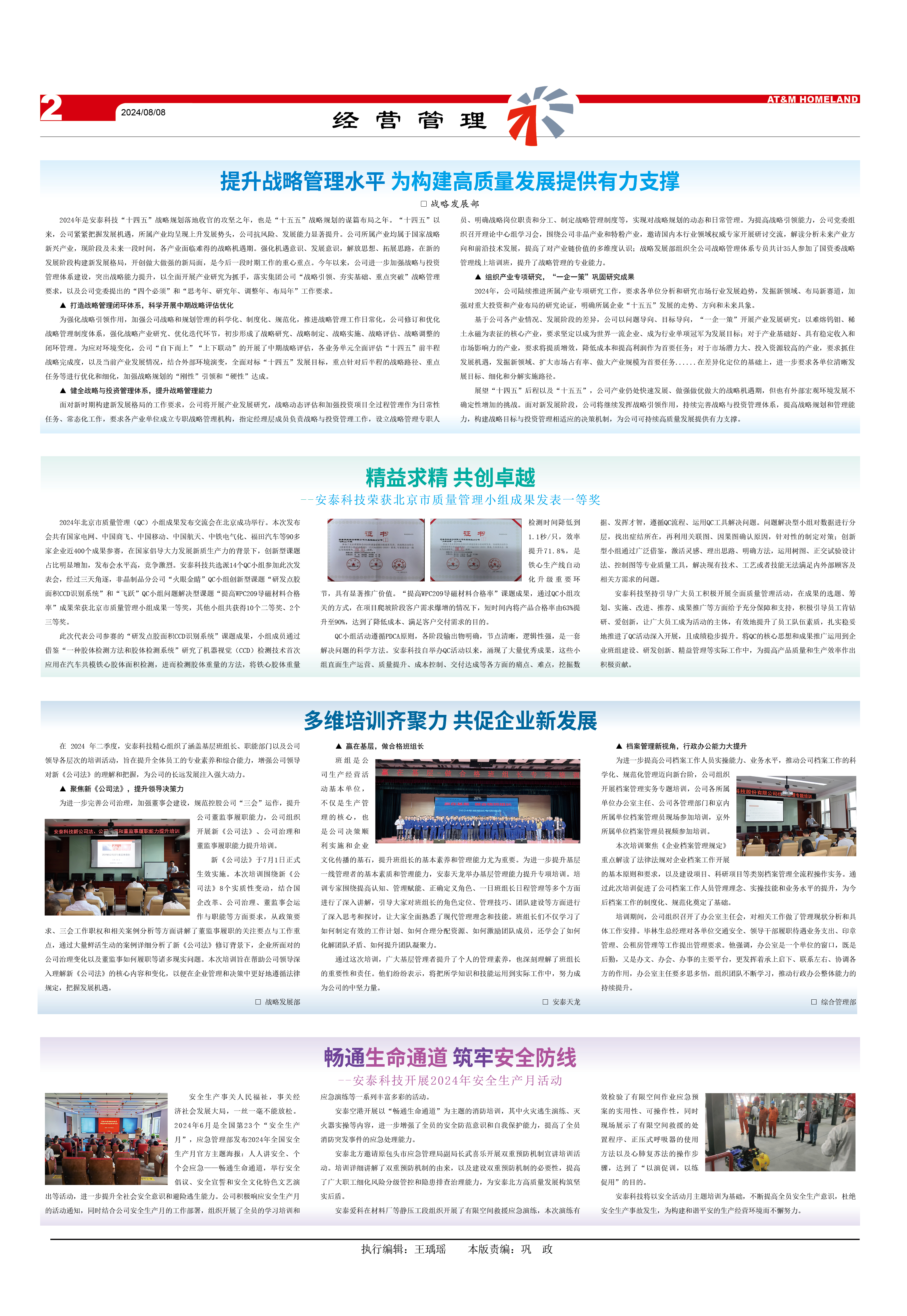 2024年是安泰科技“十四五”戰(zhàn)略規(guī)劃落地收官的攻堅(jiān)之年,也是“十五五”戰(zhàn)略規(guī)劃的謀篇布局之年。“十四五”以來(lái),公司緊緊把握發(fā)展機(jī)遇,所屬產(chǎn)業(yè)均呈現(xiàn)上升發(fā)展勢(shì)頭,公司抗風(fēng)險(xiǎn)、發(fā)展能力顯著提升。公司所屬產(chǎn)業(yè)均屬于國(guó)家戰(zhàn)略新興產(chǎn)業(yè),現(xiàn)階段及未來(lái)一段時(shí)間,各產(chǎn)業(yè)面臨難得的戰(zhàn)略機(jī)遇期。強(qiáng)化機(jī)遇意識(shí)、發(fā)展意識(shí),解放思想、拓展思路,在新的發(fā)展階段構(gòu)建新發(fā)展格局,開創(chuàng)做大做強(qiáng)的新局面,是今后一段時(shí)期工作的重心重點(diǎn)。今年以來(lái),公司進(jìn)一步加強(qiáng)戰(zhàn)略與投資管理體系建設(shè),突出戰(zhàn)略能力提升,以全面開展產(chǎn)業(yè)研究為抓手,落實(shí)集團(tuán)公司“戰(zhàn)略引領(lǐng)、夯實(shí)基礎(chǔ)、重點(diǎn)突破”戰(zhàn)略管理要求,以及公司黨委提出的“四個(gè)必須”和“思考年、研究年、調(diào)整年、布局年”工作要求。