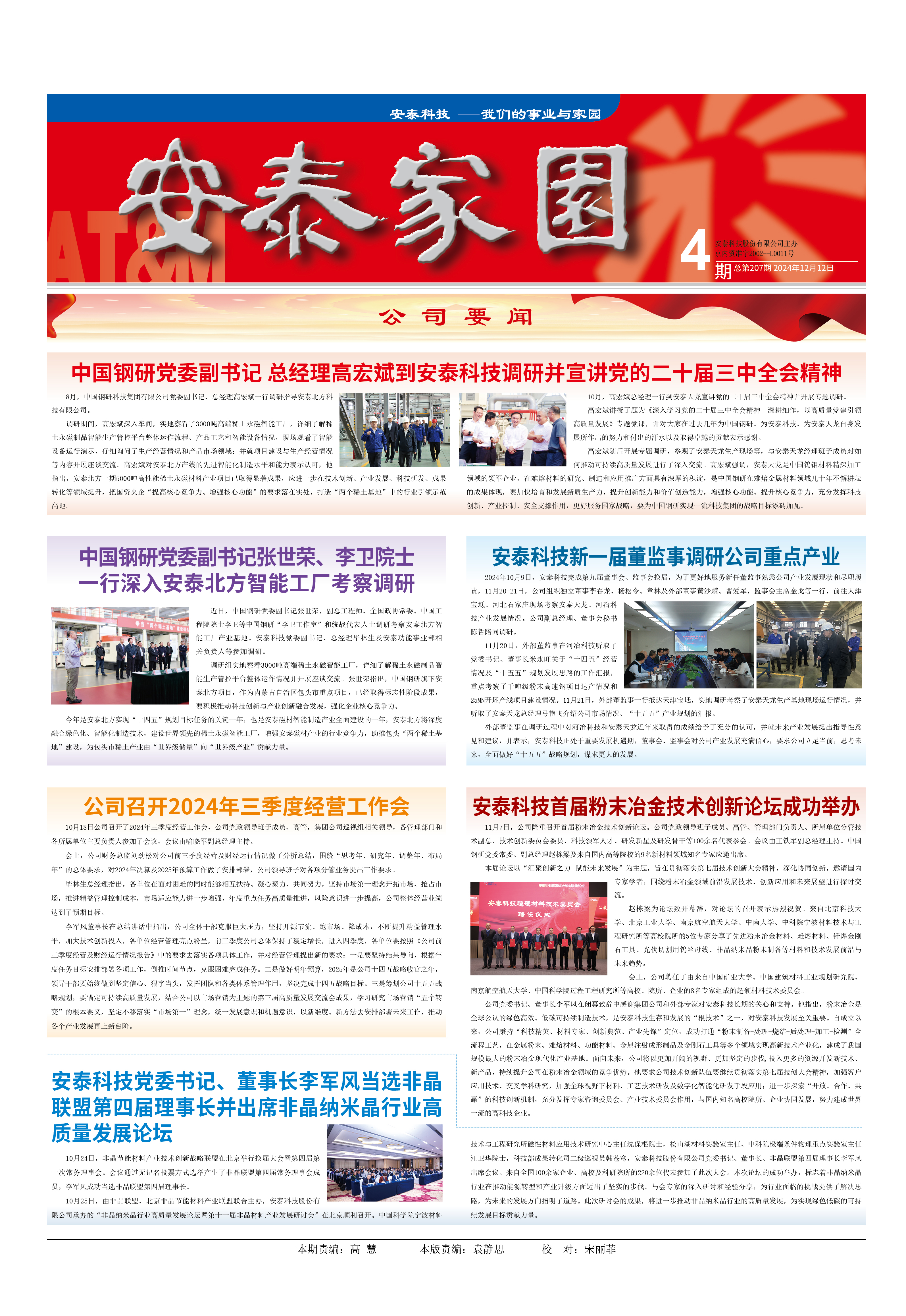 10月,高宏斌總經(jīng)理一行到安泰天龍宣講黨的二十屆三中全會(huì)精神并開(kāi)展專題調(diào)研。